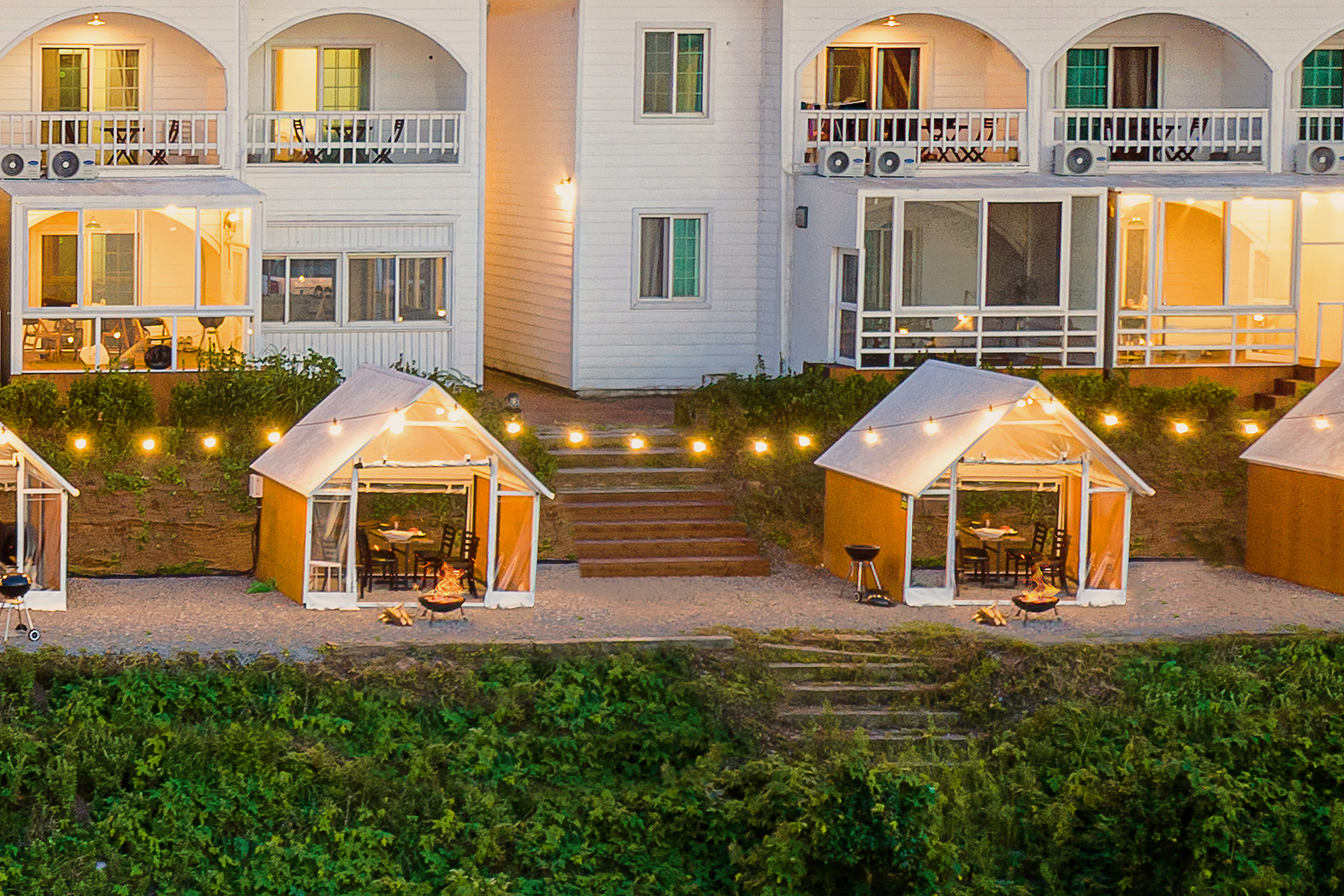 불게 물들어가는 낙조를 바라보며 타탁거리며 타오르는 불꽃과 함께여행의 추억과 하루를 마무리하며 쉬어보시길 바랍니다.